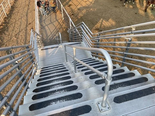 The photo below shows the close up view of the arena areas at the Buzzard Roost where riders mount horses and bulls as part of the rodeo experience. The Grand Stand seating area is in the background. This proximity and view is not available from the Grand Stand. Because individuals living with a disability may not be able to access the Buzzard Roost assembly area, they cannot enjoy this experience the same as individuals who are not disabled. This is discrimination.