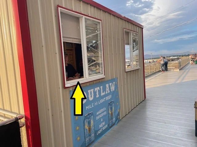 Another issue with ADA compliance at the Buzzard Roost seating area was the sales counter/window for the refreshment stand. See the photo below where the counter/window openings to receive refreshments and make payment are more than 36 inches above the adjacent floor.